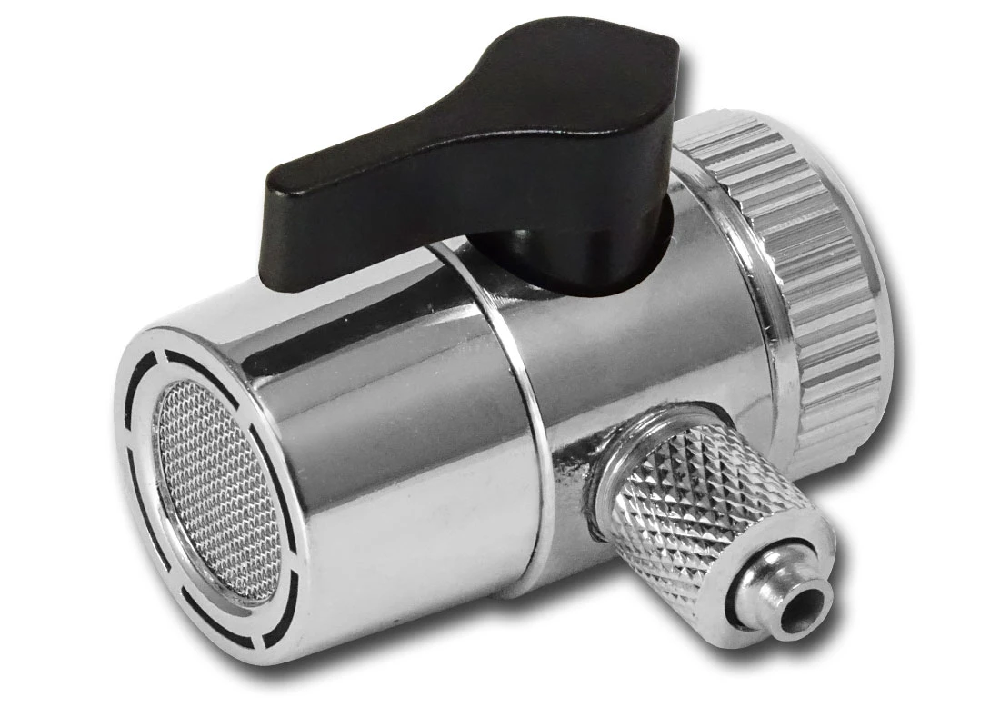 Przyłącze Aquafilter FXFVP umożliwiające podłączenie dopływu wody do filtra z wylewki baterii zlewozmywakowej. Przyłącze posiada gwint zgodny ze złączką FXFTP. W przyłączu znajduje się zawór umożliwiający skierowanie wody do filtra lub zamknięcie dopływu wody.
