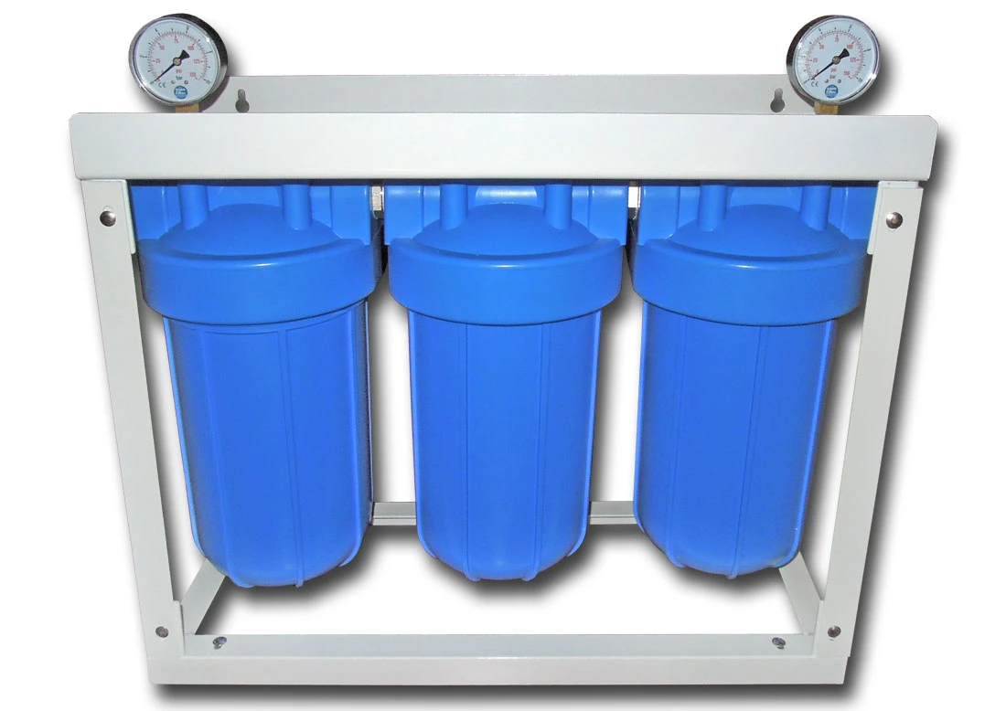 - trzy korpusy filtra standardu BB10 (Aquafilter FH10B1-B) zamontowane na stelażu