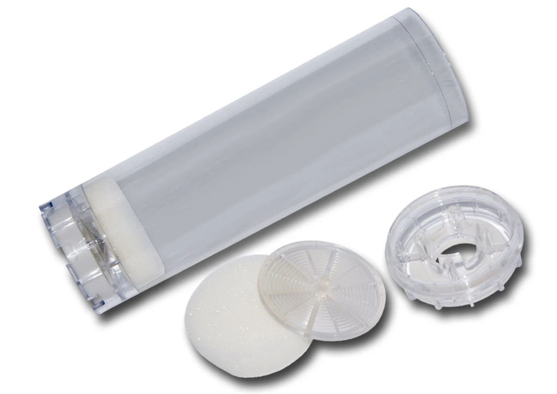 Uniwersalny wkład Aquafilter FCEB10, służący do samodzielnego zasypania dowolnym złożem do uzdatniania wody (nie reagującym z tworzywem z którego wykonany jest wkład: Acrylic Styrene – kopolimer akrylowo-styrenowy). Wkład może być wykorzystywany wielokrotnie - górna część jest otwierana, co umożliwia wielokrotną wymianę złoża.