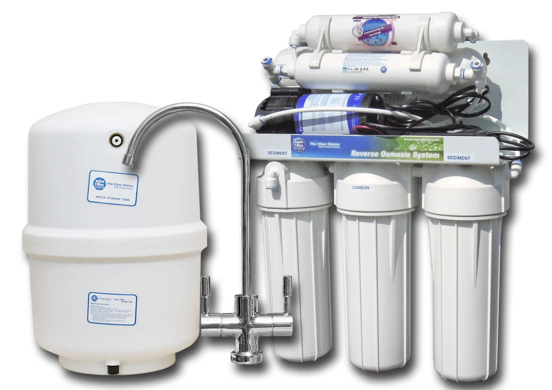 - Zasadniczy stopień filtracji - cienkowarstwowa membrana osmotyczna, eliminująca z wody 96-99% rozpuszczonych w niej zanieczyszczeń. W konstrukcji membrany wzorowano się na występującym w naturze zjawisku osmozy (występuje również w ludzkim organizmie). Postęp technologiczny pozwolił na produkcję membran eliminujących zanieczyszczenia mechaniczne, organiczne, metale ciężkie i pierwiastki radioaktywne. Dzięki zastosowanej membranie woda jest czysta, pozbawiona związków chemicznych występujących w niej w wyniku tzw postępu cywilizacyjnego (metale ciężkie jak ołów itp). Skutecznie usuwa związki chemiczne które dostają się do wody z pól uprawnych (nawozy na bazie azotu itp). Aquafilter w swoich produktach stosuje membrany najlepszych producentów. Woda uzdatniona na tym etapie, gromadzona jest w zbiorniku z którego jest następnie pobierana przez kranik, pośrednio przez kolejne (niżej wymienione) etapy doczyszczania.