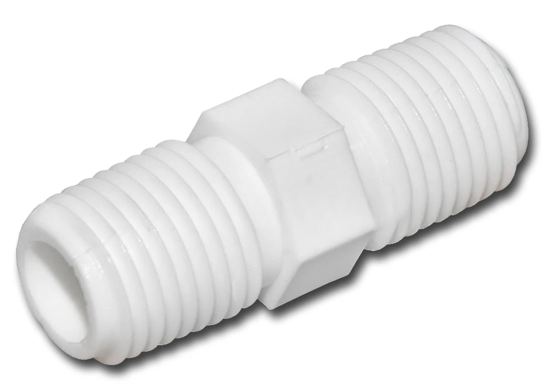 Typowy montaż złączki to wkręcenie jej w korpusy serii EG, stosowane w budowie filtrów osmotycznych i przepływowych podzlewozmywakowych.