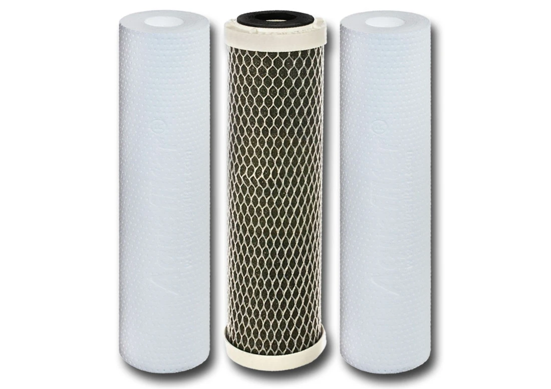 Podstawowy zestaw trzech wkładów filtrujących, przeznaczony do filtrów które posiadają trzy kolumny filtracyjne oraz do filtrów odwróconej osmozy.