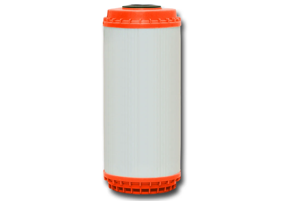 Wkład standardu wymiarowego Big Blue 10, przeznaczony do stosowania wraz z odpowiednimi obudowami w uzdatnianiu wody w mieszkaniach i małych domach. Wydajność wkładu pozwala na skuteczne uzdatnianie wody przy przepływach typowych dla mieszkań i małych domów (rodziny 2-4 osoby).